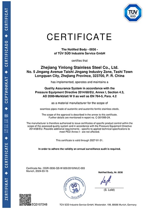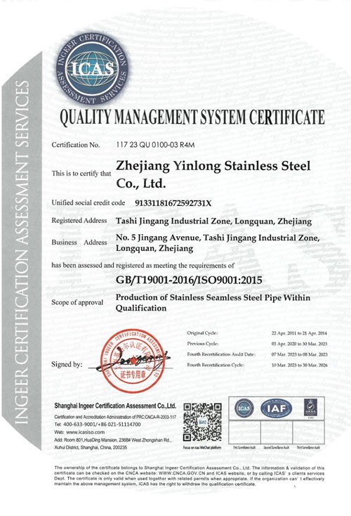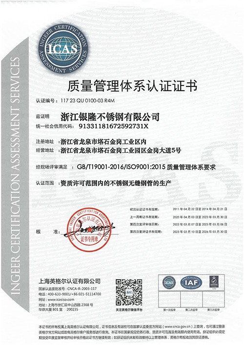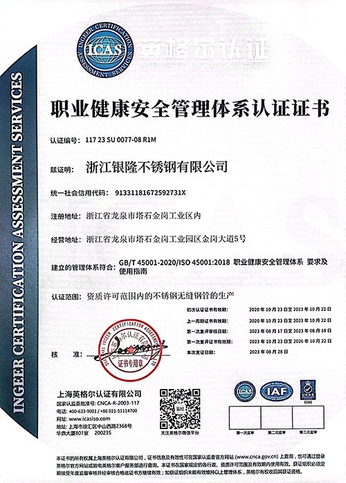 浙江銀隆不銹鋼有限公司創始于2006年,是一家專業生產不銹鋼無縫管的企業。公司位于浙江麗水市,企業注冊總資金貳億壹仟柒佰肆拾玖萬元,擁有4家工廠,占地總面積11萬平方米,職工530人,年產不銹鋼無縫管5萬噸。